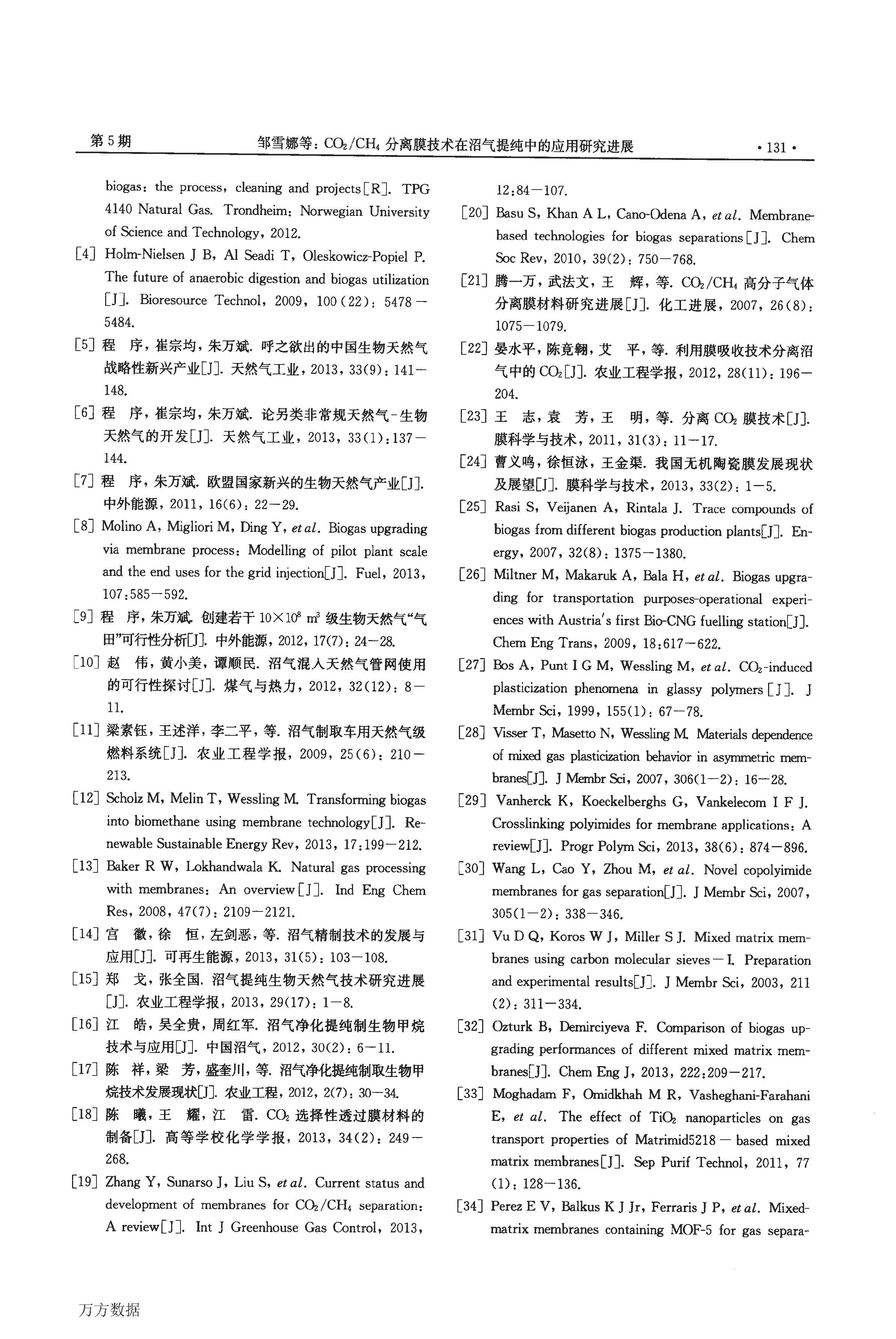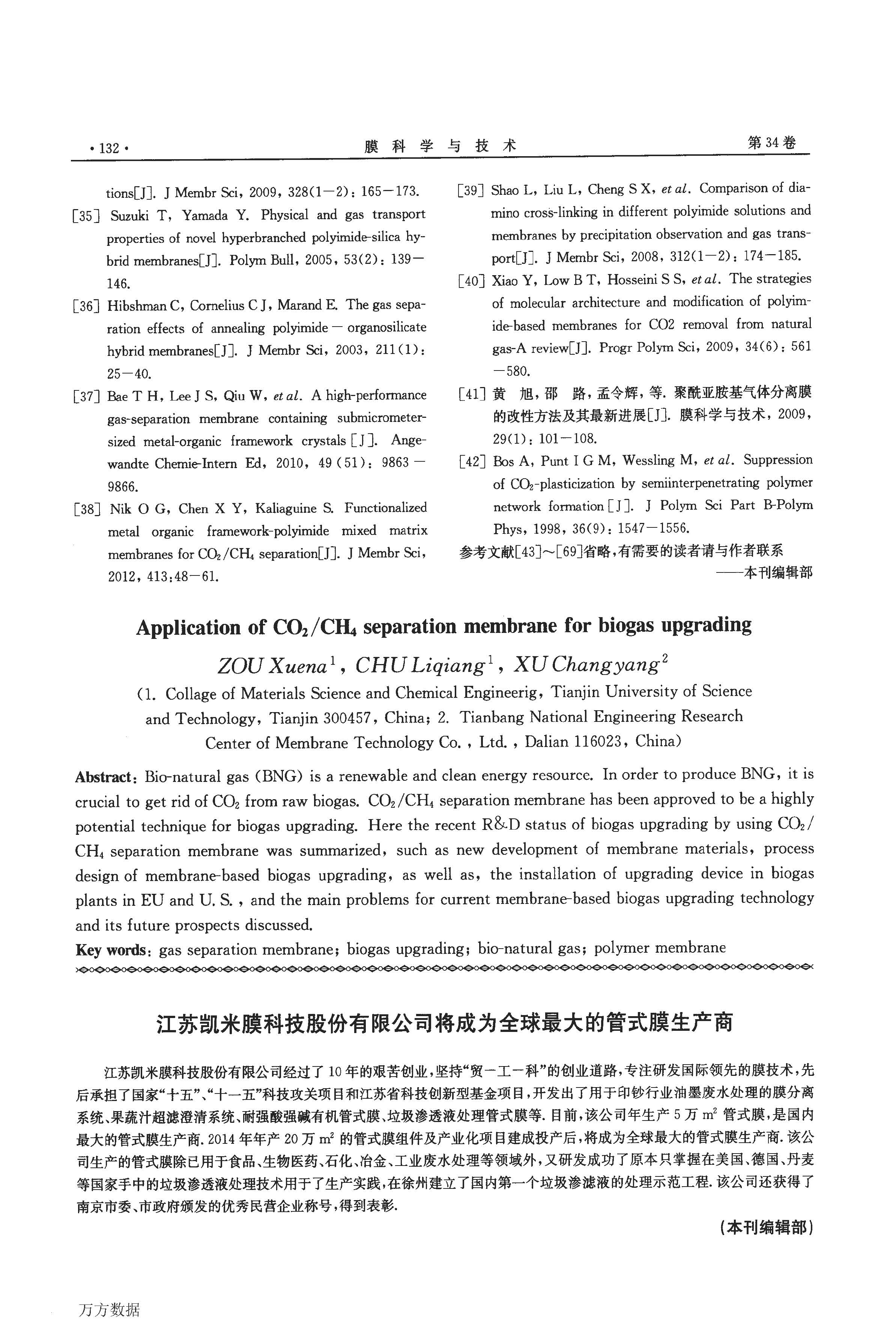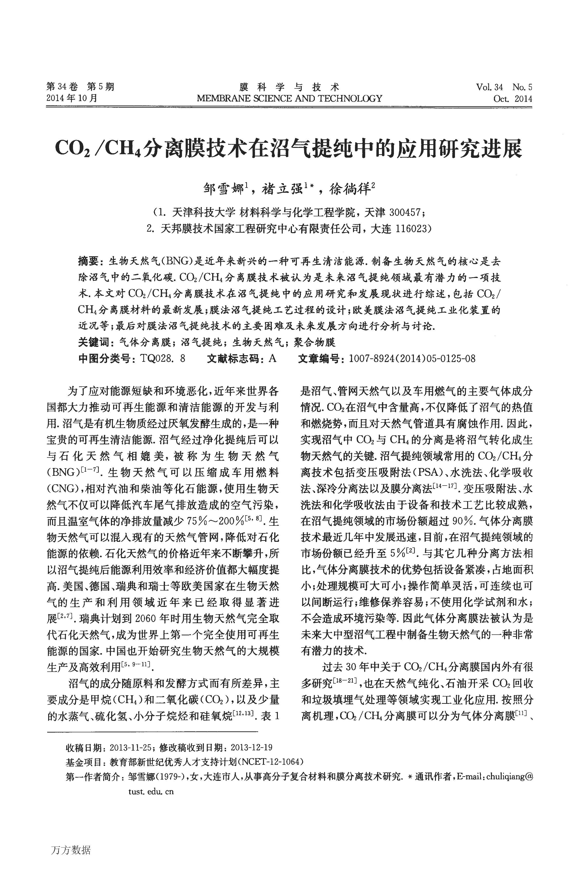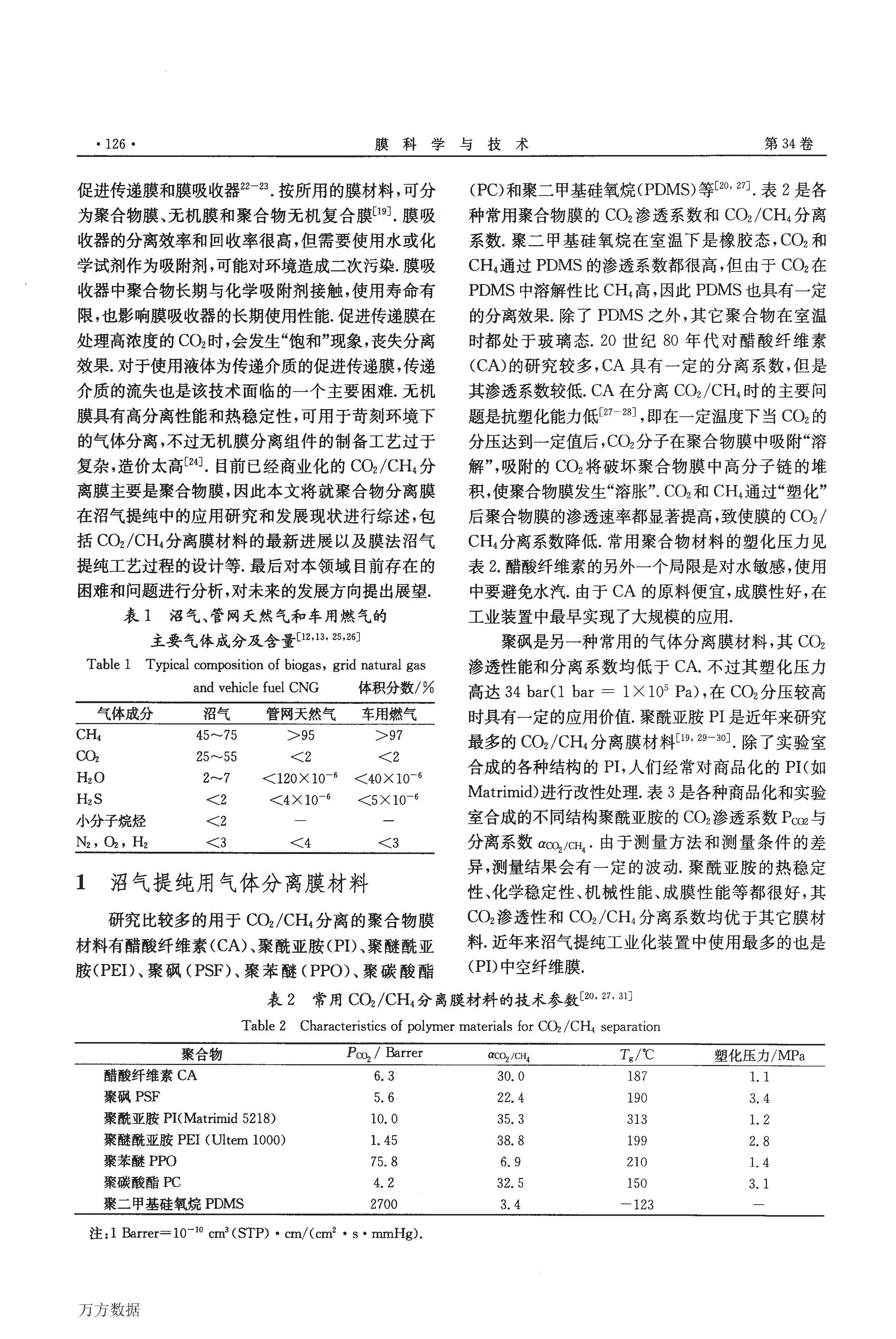 CO2CH4分離膜技術在沼氣提純中的應用研究進展