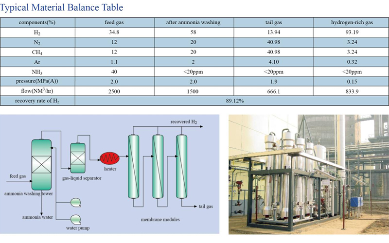 ●The recovered concentration and recovery rate of hydrogen are both up to 90% with one-stage hydrogen recovery unit. When with two-stage unit, the data are up to 99%.